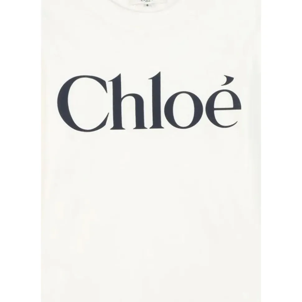Voeg een vleugje stijl toe aan de garderobe van je kind met dit witte Chloé T-shirt. Gemaakt van 100% katoen, met lange mouwen, een geribbelde ronde hals en zoom, versierd met een logo op de voorkant. Machinewasbaar op 30°C.