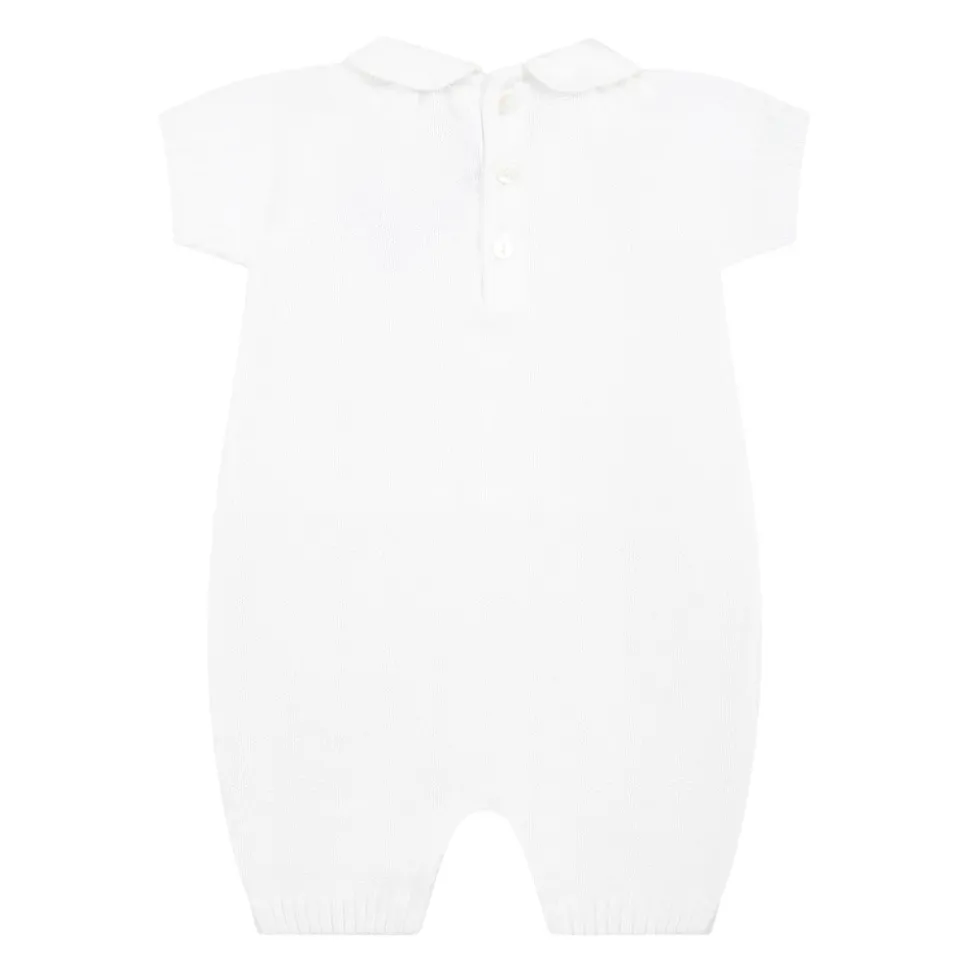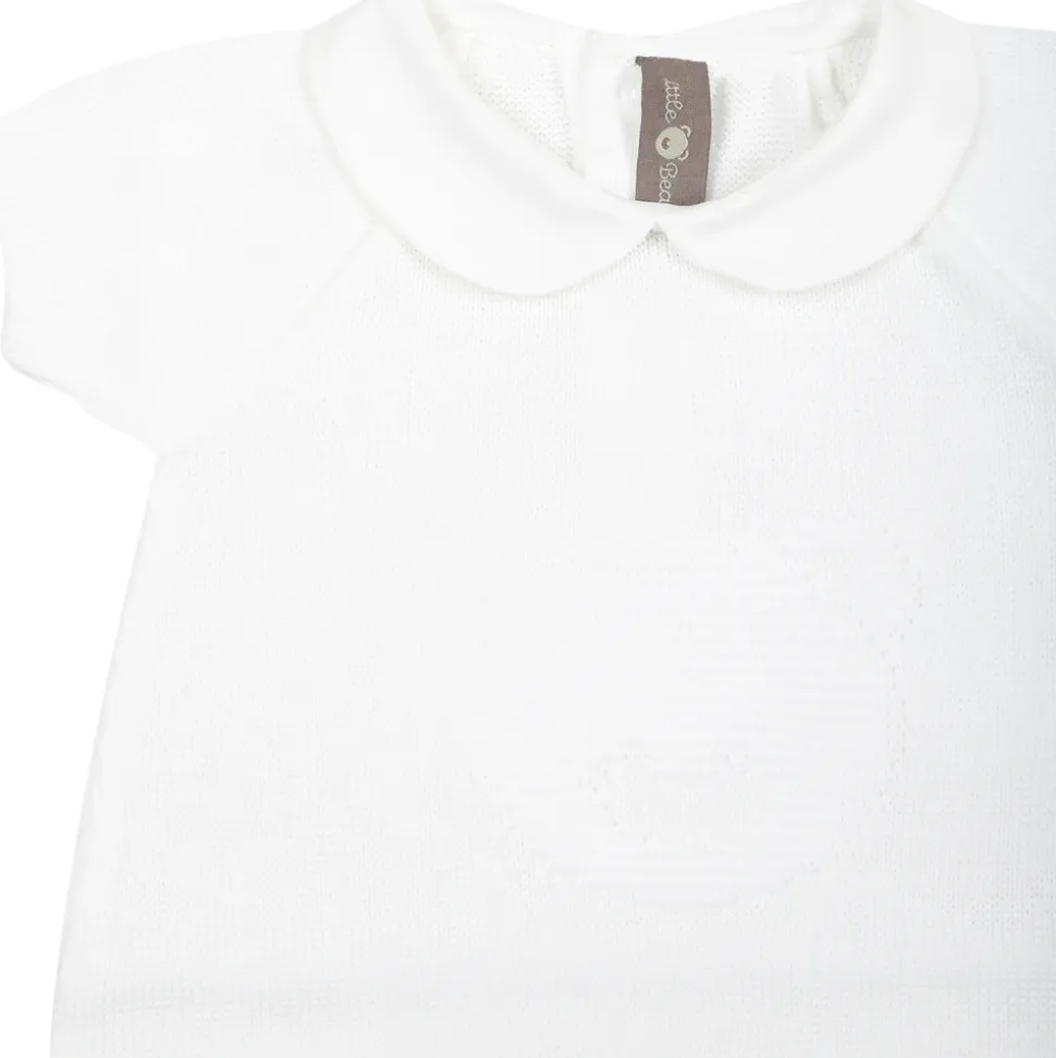 Kleed je kleintje in deze schattige witte romper van Little Bear. Gemaakt van 100% katoen, het heeft een witte kraag, korte mouwen en een schattige geborduurde Teddybeer aan de voorkant. Met witte knoopsluitingen op de rug en tussen de benen is deze romper zowel stijlvol als praktisch. Machinewasbaar op 40°.