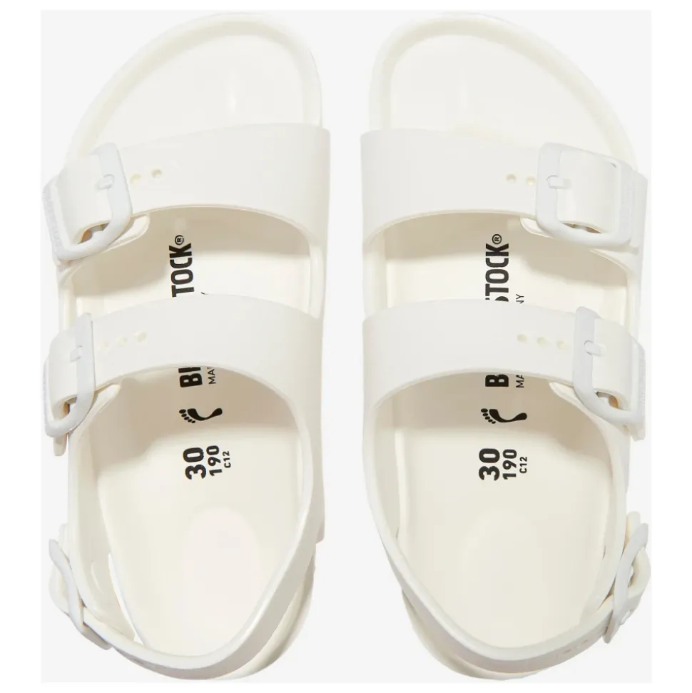 Upgrade de schoenen van je kind met de Birkenstock Kids Milano Eva Sandalen in het wit, een luxueuze en comfortabele toevoeging aan hun zomergarderobe. Dit high-end designerstuk straalt verfijning en premium vakmanschap uit, perfect voor warme zomerdagen. Het uniseks ontwerp in een neutrale tint maakt het een veelzijdige keuze voor zowel jongens als meisjes. Stap stijlvol het seizoen in met Birkenstock!