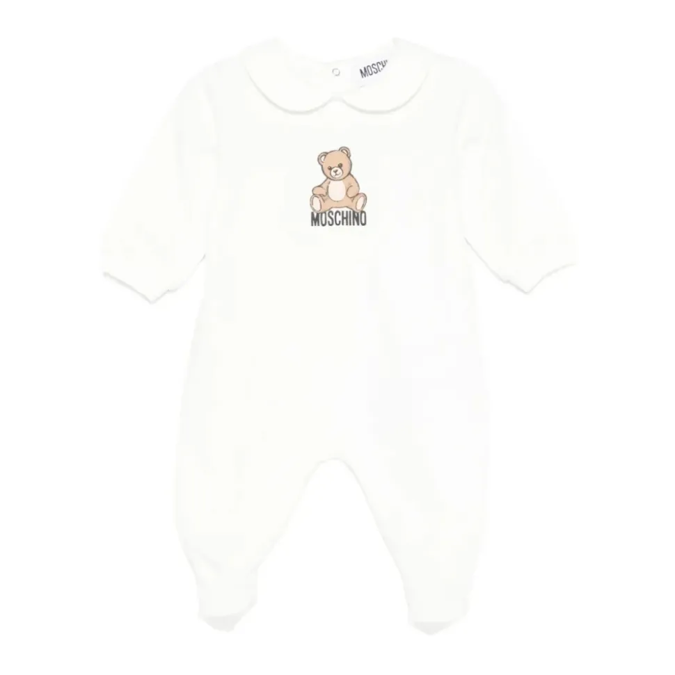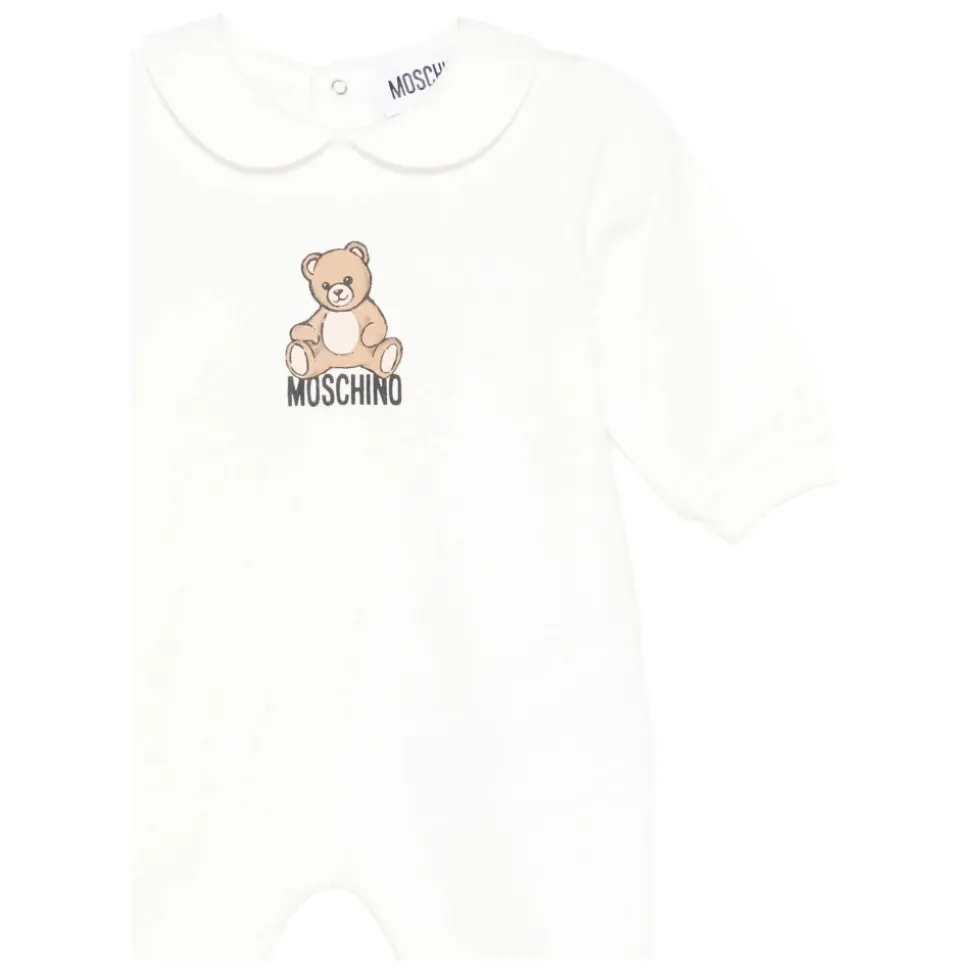 Kleed je kleintje in stijl met deze witte Moschino romper met schattige teddybeerprint. Verkrijgbaar in maten voor baby’s.