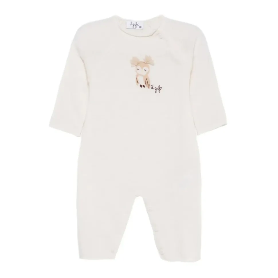 Kleed je kleine meisje in stijl met deze wollen onesie van Il Gufo, met schattige uilenborduursels. Verkrijgbaar in maten voor babykleding.