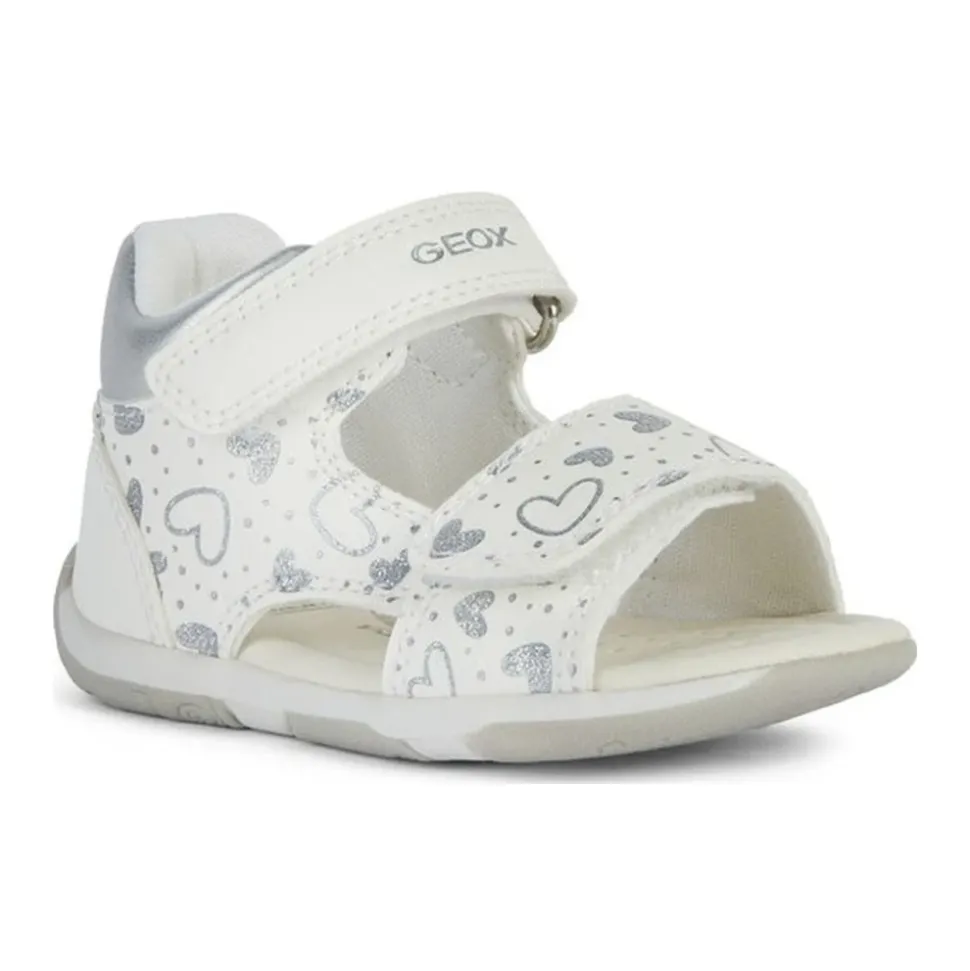 Ontdek deze stijlvolle Geox sandalen voor meisjes, perfect voor kinderen. Gemaakt met een witte polyurethaan bovenkant en een katoenen voering, hebben deze sandalen een thermoplastische rubberen buitenzool. Productcode: B450YA 054AJ C0007.