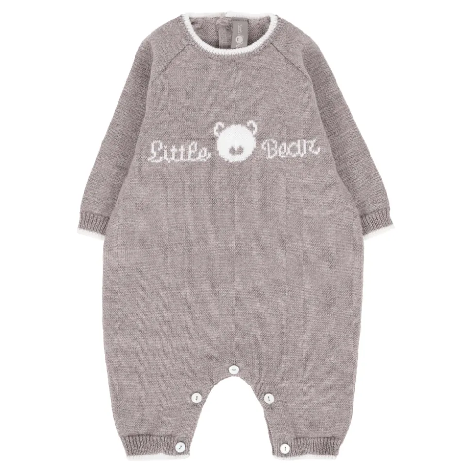 Kleed je kleintje in stijl met deze bruine taupe jumpsuit van Little Bear. Gemaakt in Italië, deze jumpsuit heeft lange mouwen, een geribbelde ronde hals, moeder-van-parel knoopsluiting aan de achterkant en tussen de benen, en is versierd met het logo van het merk aan de voorkant. Gemaakt van 100% zuivere wol. Wassen op 30°C.
