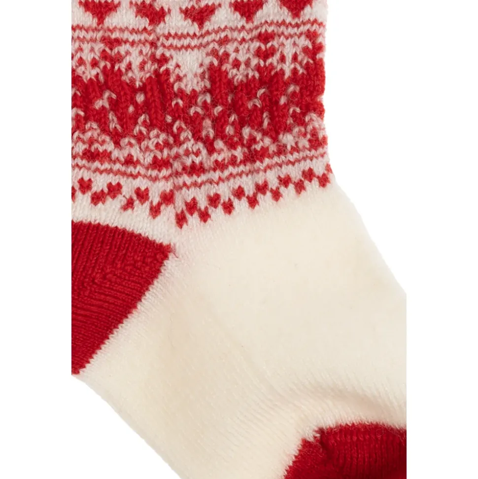Introductie van WOLLEN SOKKEN uit de exclusieve VERSACE KIDS-collectie, die elegantie en functionaliteit combineren. Gemaakt van zachte wol met een vleugje polyamide en polyurethaan, garanderen ze comfort en warmte op koelere dagen. De dominante rode kleur verrijkt met witte hartpatronen en geometrische vormen maakt ze tot een uniek accent voor de garderobe van elk kind. Details zoals de rode afwerking op de tenen, hielen en ribbels, samen met de