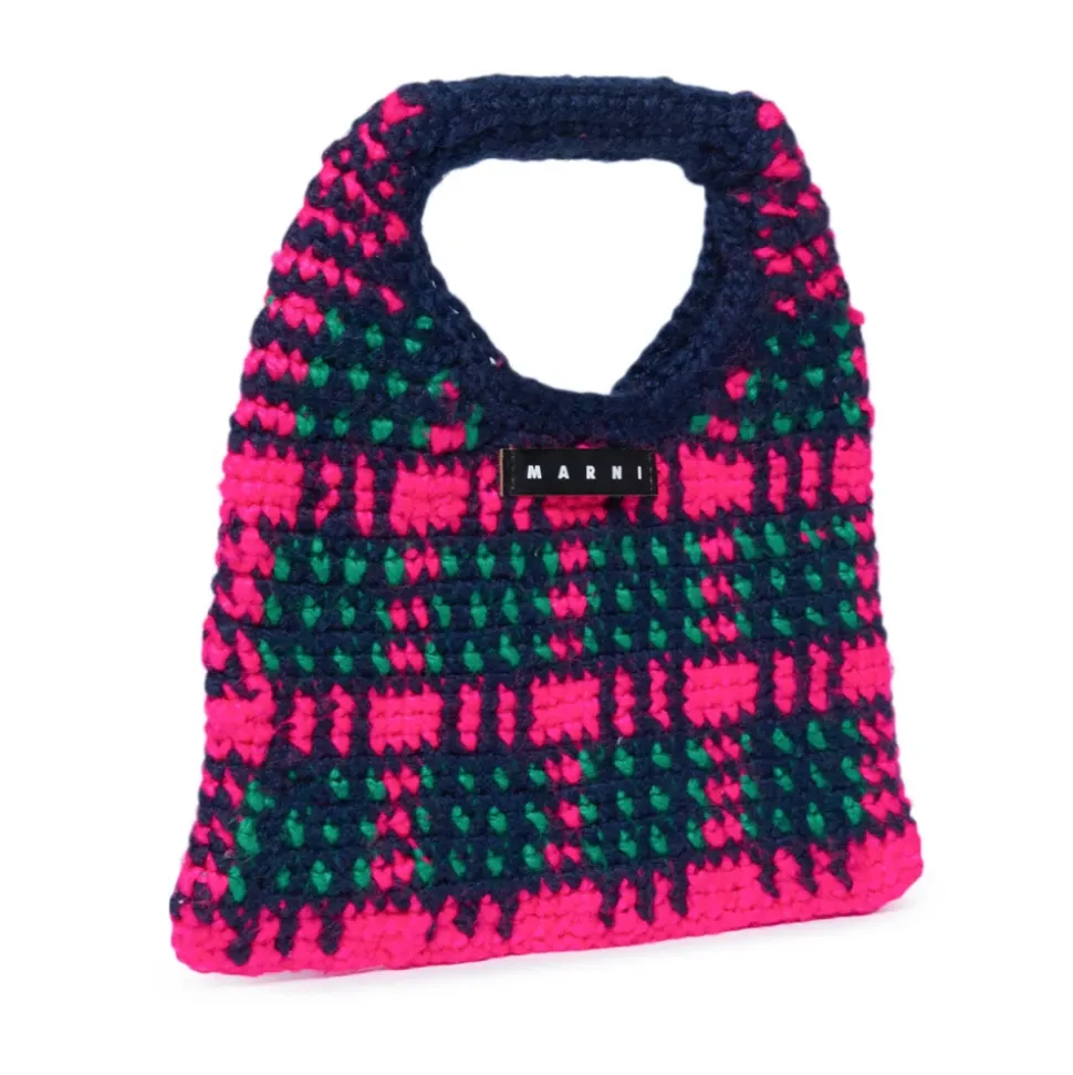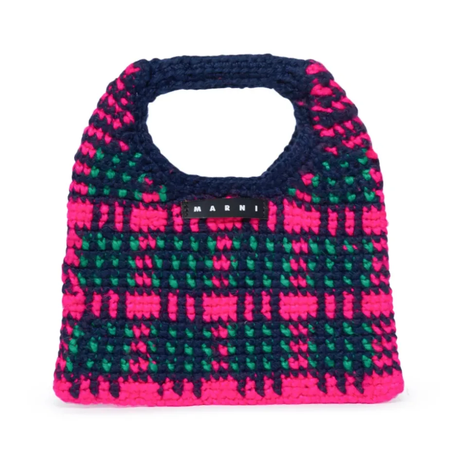 De Marni Wooly Crochet Check Tas is een stijlvol handaccessoire met een uniek gehaakt check-design en een institutionele logopatch, perfect voor speciale gelegenheden. Belangrijkste kenmerken: Fuxia | Multicolor | Acryl | Gehaakte check constructie | Handtas design | Institutionele logopatch | Afmetingen en pasvorm: 15 cm hoogte | 25 cm totale hoogte | 25 cm breedte | Handvat drop: 7 cm | Samenstelling en onderhoud: 100% Acryl | Applicatie: 100% Rundleer