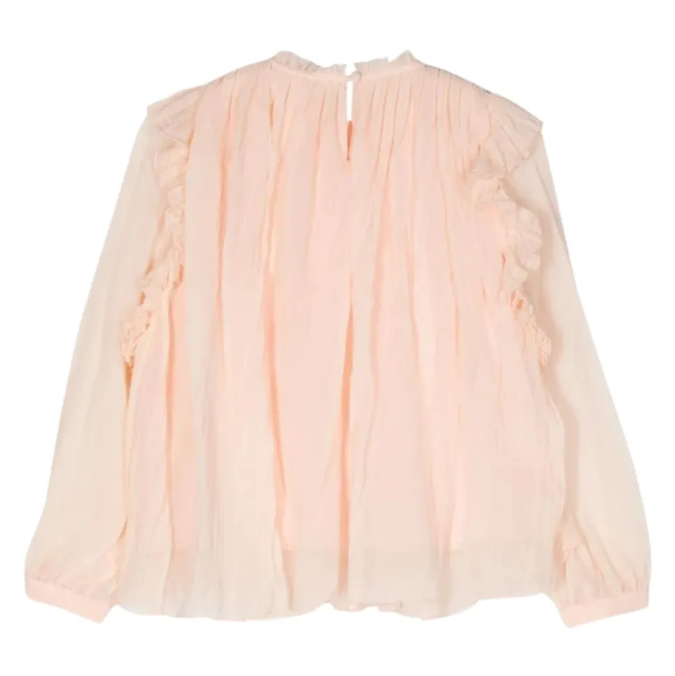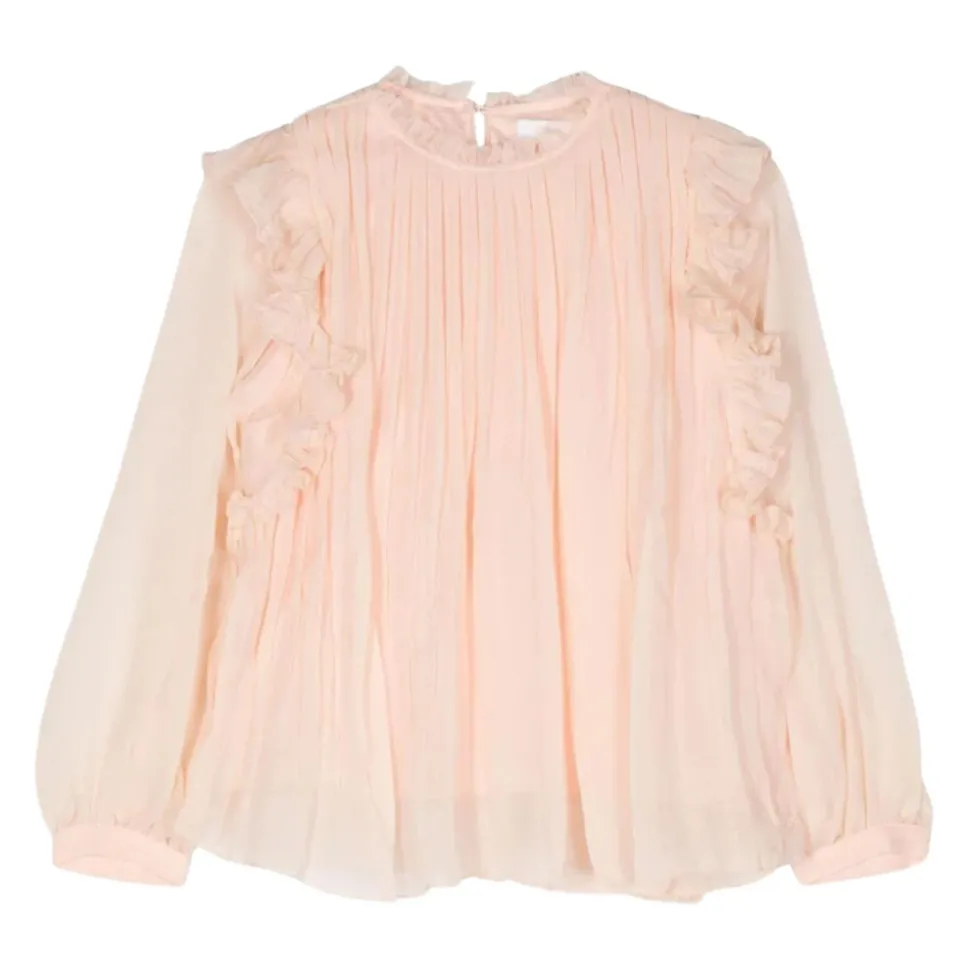 Chloé presenteert de Zijden Blouse met Ruffles, een delicate toevoeging aan elke garderobe. Deze blouse is vervaardigd uit luxueuze zijde en voorzien van charmante ruffles en een tijdloos design, perfect voor veelzijdige styling. Belangrijkste kenmerken: Roze | Zijde | Sluiting met knoop aan de achterkant | Ronde hals | Lange mouwen | Rechte zoom | Geplooide en gerimpelde details | Afmetingen en pasvorm: Normale pasvorm | Samenstelling en onderhoud: 100% Zijde | Uitsluitend chemisch reinigen