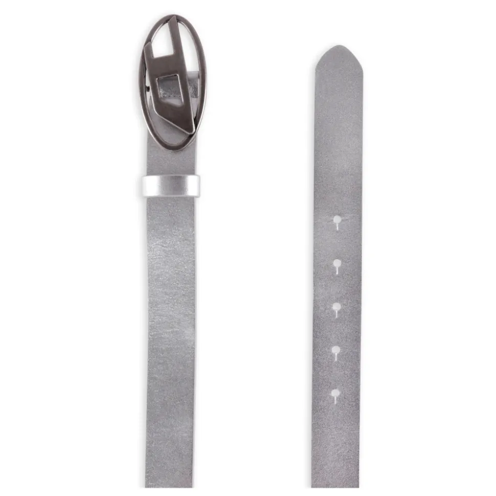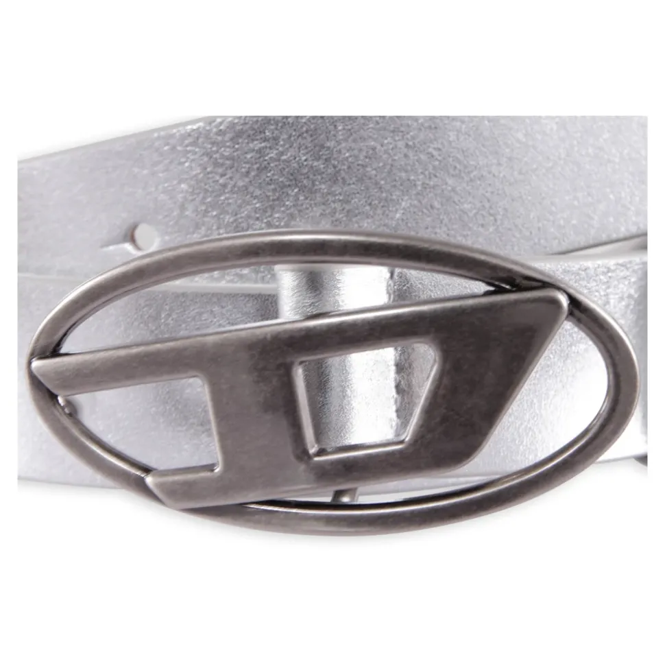 Upgrade de stijl van je kind met deze zilveren leren riem van Diesel uit de Fashion Show-lijn. Met een metallic effect, metalen gesp en D-logo versiering is dit accessoire een trendy toevoeging aan elke outfit. Gemaakt van 100% leer.