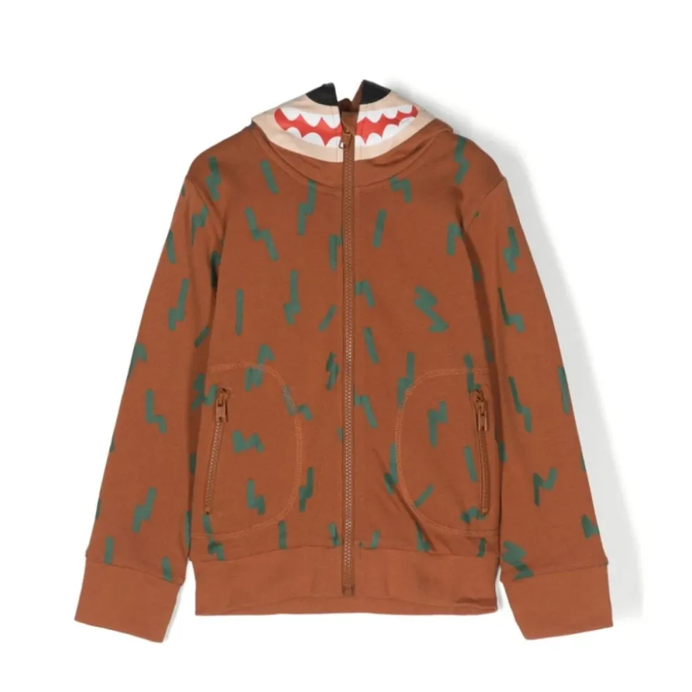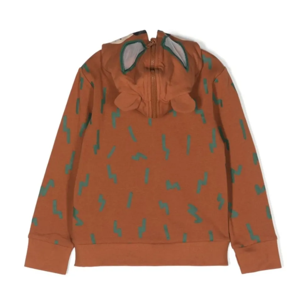 Ontdek de Stella McCartney Zip-Up Hoodie, een speelse toevoeging aan elke garderobe. Deze hoodie heeft een charmante bosgroene doodle print op een rijke bruine katoenen jersey, perfect om een vleugje plezier toe te voegen aan alledaagse outfits. Belangrijkste kenmerken: Bruin | Bosgroen | Katoenen jersey | Elastische manchetten en zoom | Twee zakken met ritssluiting | Lange mouwen | Capuchon met berensnuit | Afmetingen en pasvorm: Normale pasvorm | Samenstelling en onderhoud: Katoen | Machinewas koud, droogtrommel laag