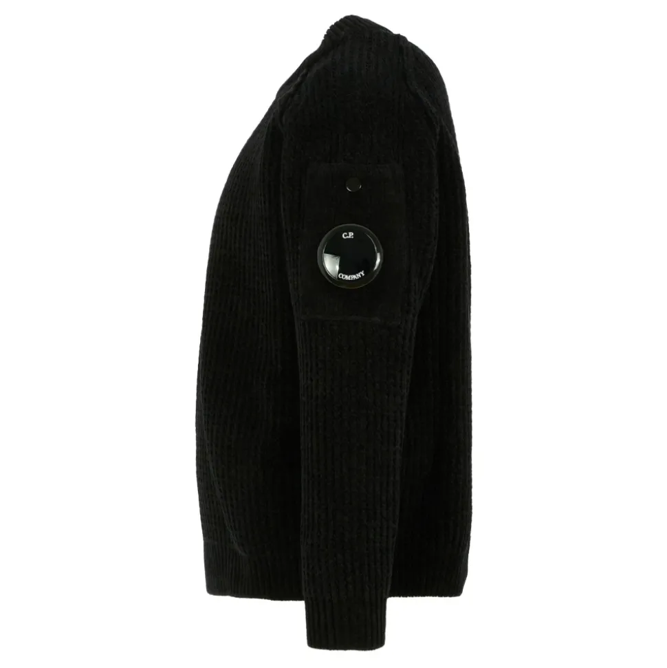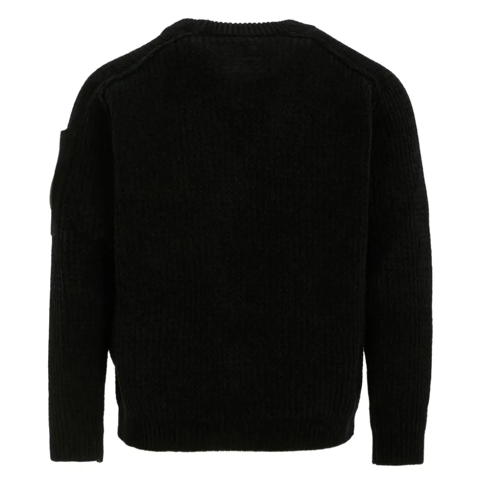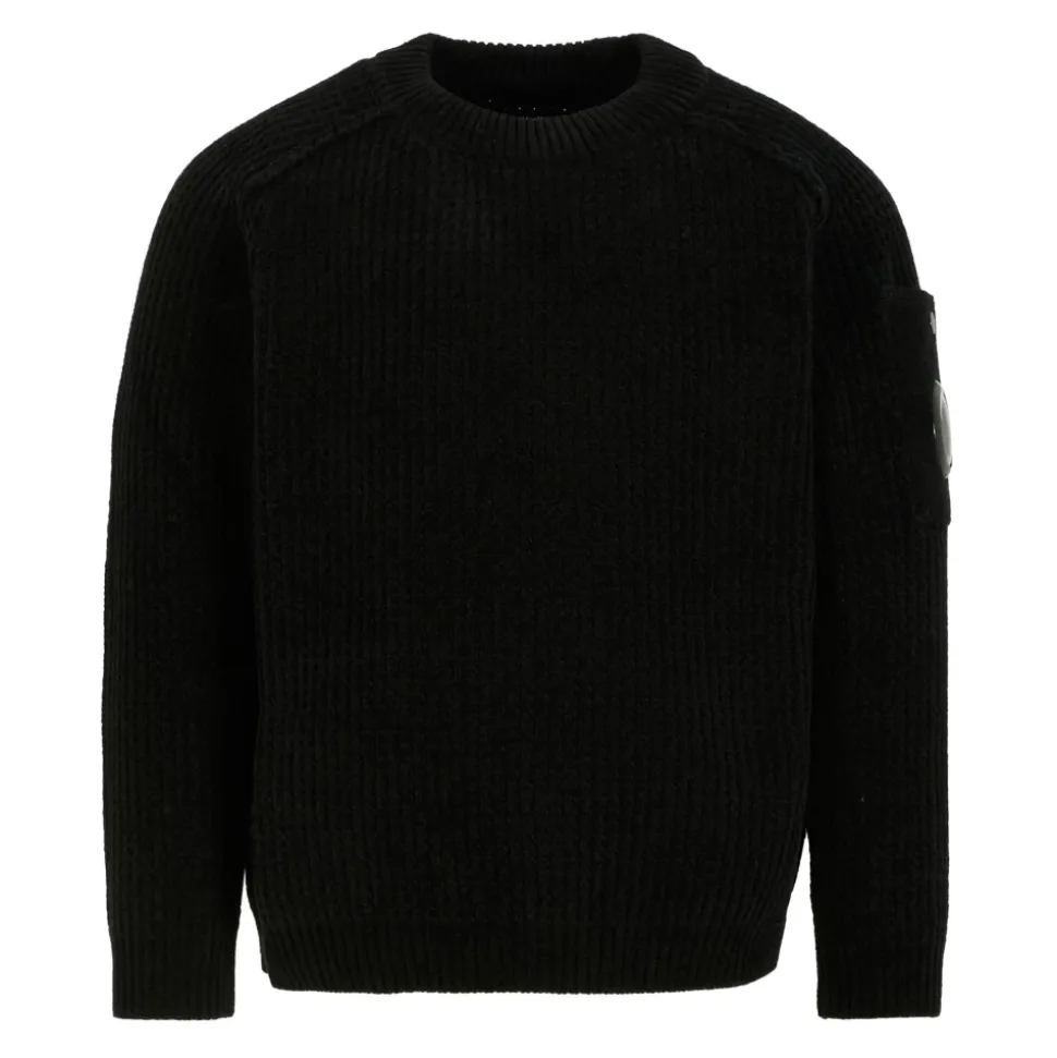Upgrade de garderobe van je kind met deze zwarte chenille trui van C.P. Company. Met lange mouwen, een ronde hals, geribbelde manchetten en zoom, en een zak op één mouw met het iconische lensdetail. Gemaakt van 100% katoen. Aanbevolen om met de hand te wassen.