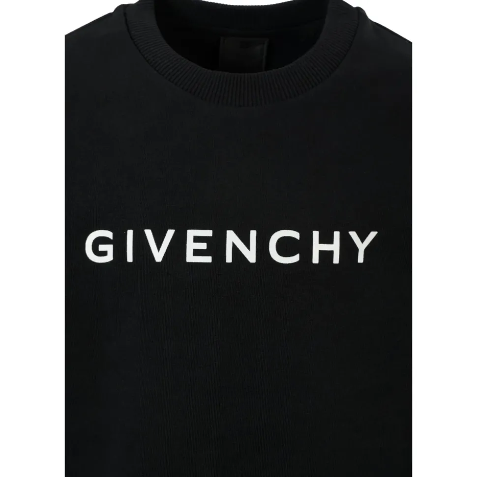 Kleed je kleintje in stijl met deze zwarte sweatshirt van Givenchy Kids. Gemaakt van een zachte mix van katoen fleece, met lange mouwen, een ronde hals, geribbelde manchetten en zoom. De voorkant is versierd met een logoprint, terwijl de achterkant het iconische 4G-motief toont. Gemaakt van 85% katoen en 15% polyester. Machinewas op 30°C.