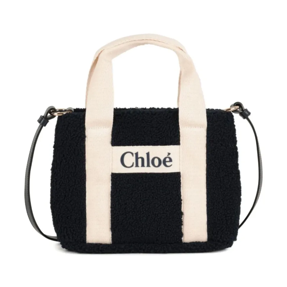 Upgrade de stijl van je kleine meid met deze Chloé fluffy tote tas in chique zwart-wit design. Met het iconische logo is deze ruime tas perfect voor alledaagse benodigdheden.