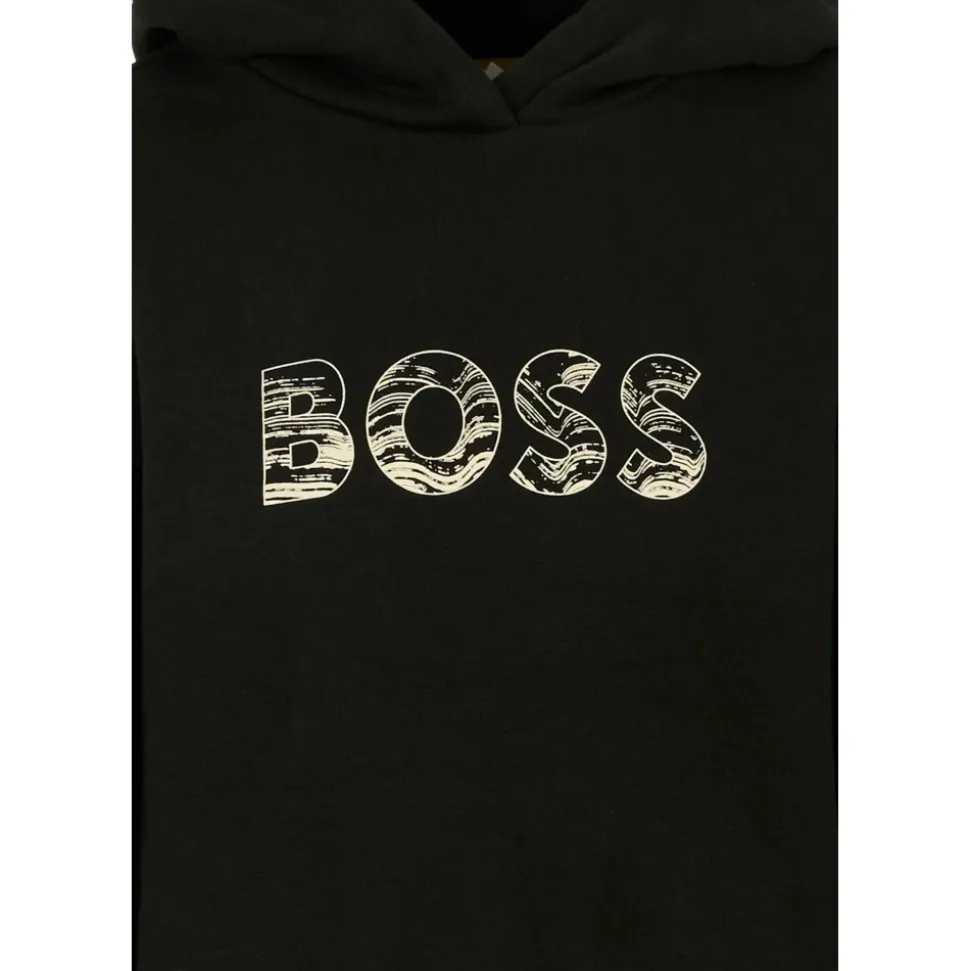 Upgrade de garderobe van je kind met deze zwarte Hugo sweatshirt. Gemaakt van fleece katoen, met lange mouwen, een capuchon, geribbelde manchetten en zoom. Het ivoorkleurige rubberen logo op de voorkant voegt een stijlvolle touch toe. Gemaakt van 87% katoen en 13% polyester. Machinewas op 30°C.