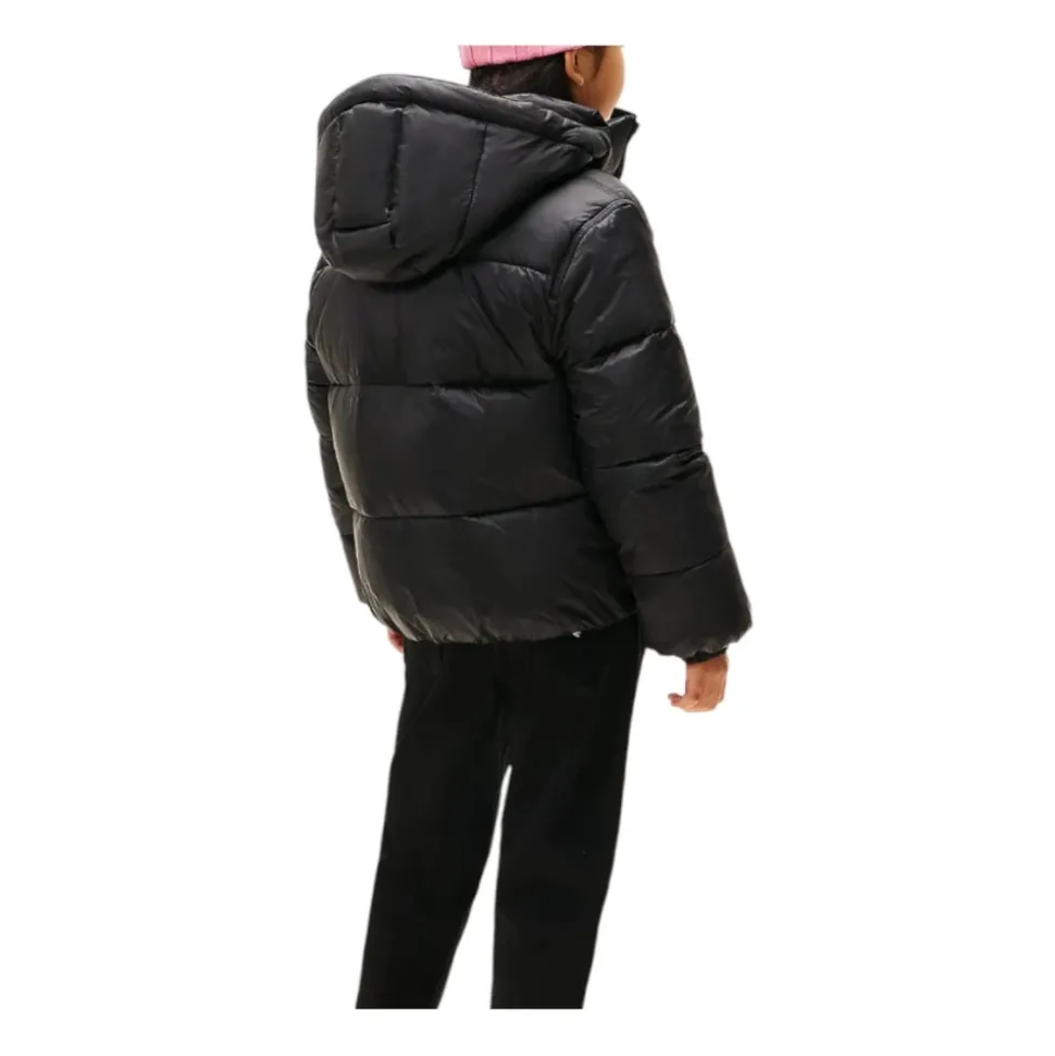 Geef je kleintje de stijlvolle en beschermende touch die ze verdient met de Hooded Shiny Black jas van Tommy Hilfiger. Met een glanzende afwerking en modern design is dit kledingstuk perfect voor koude dagen zonder in te leveren op comfort. Het heeft lichte en warme vulling, ideaal voor de winter, een geïntegreerde capuchon voor extra bescherming tegen wind en regen, een ritssluiting aan de voorkant en praktische zakken. Ontworpen om mode en functionaliteit te combineren, wordt deze jas het essentiële kledingstuk voor de dagelijkse avonturen van je dochter, met de onmiskenbare premiumstijl van Tommy Hilfiger.