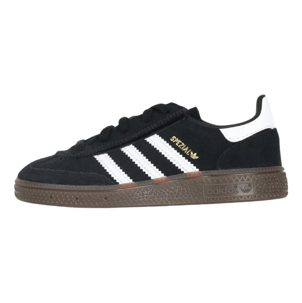 Maak kennis met iconische stijl voor je kleintje met deze ADIDAS ORIGINALS Handball Spezial sneakers voor baby’s. Het zachte en flexibele suède bovenwerk is perfect voor kleine voetjes, terwijl de elastische veters ze gemakkelijk aan en uit laten trekken. Met een old-school adidas vibe zijn deze sneakers ideaal om een stijlvolle reis te beginnen. Herfst-winter seizoen. Zwarte baby sneakers met lage profil voor herfst-winter JI2898.