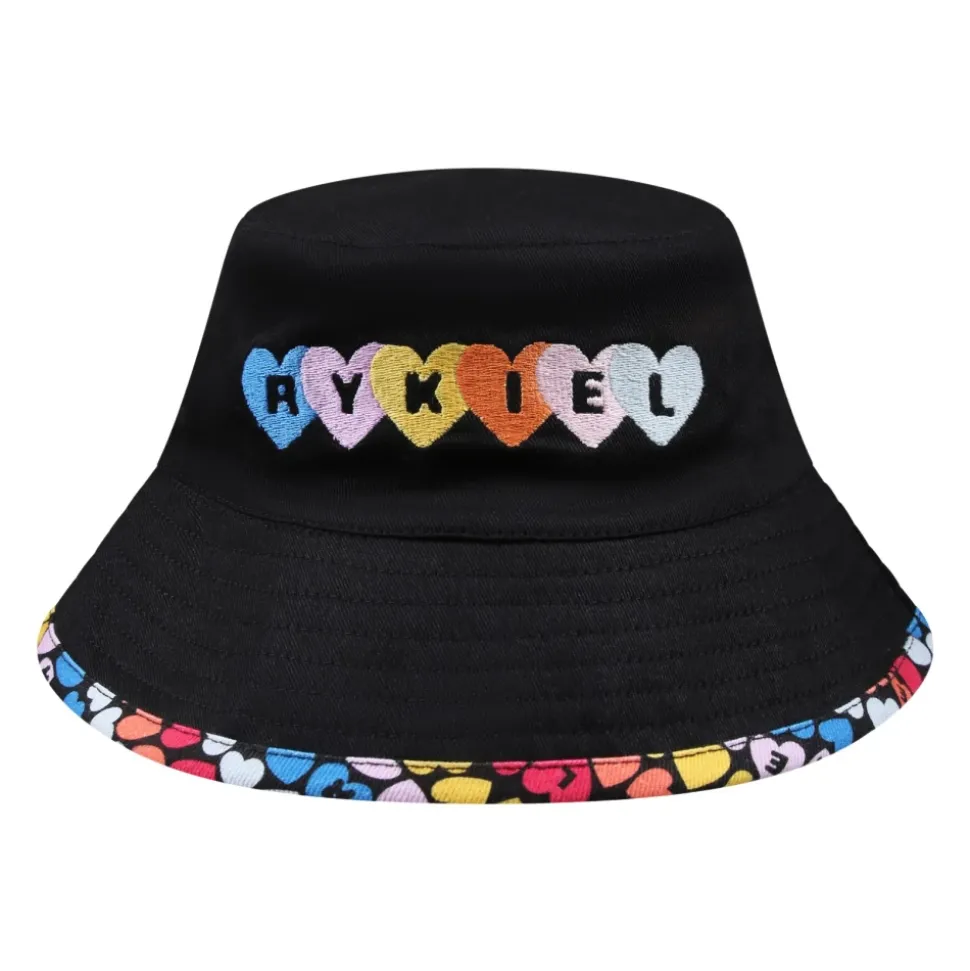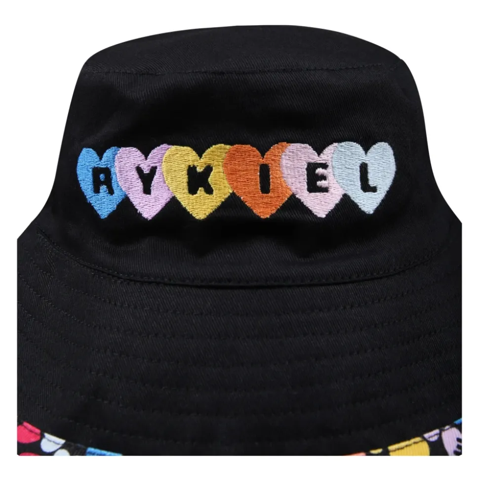 Upgrade je stijl met deze zwarte katoenen cloche hoed van Sonia Rykiel. Versierd met veelkleurige harten aan de binnenkant en een logo met kleine harten aan de voorkant. Gemaakt van 100% katoen. Wassen op 30°C.