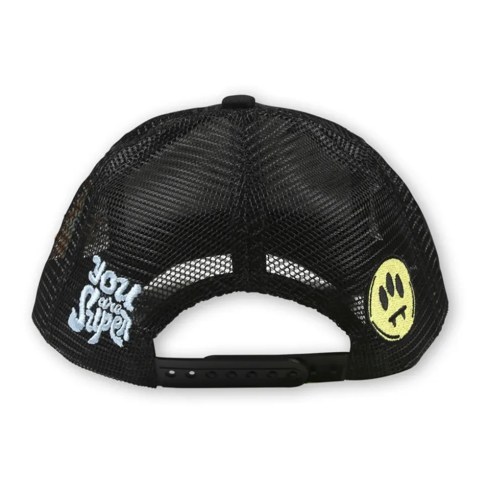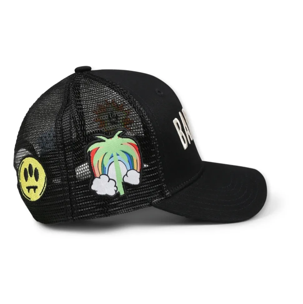 Upgrade de stijl van je kind met deze zwarte katoenen pet van BARROW. Voorzien van een klep, verstelbare sluiting, logo borduursel aan de voorkant en smiley borduursel aan de zijkanten. Gemaakt van 60% katoen en 40% polyester. Alleen handwas.