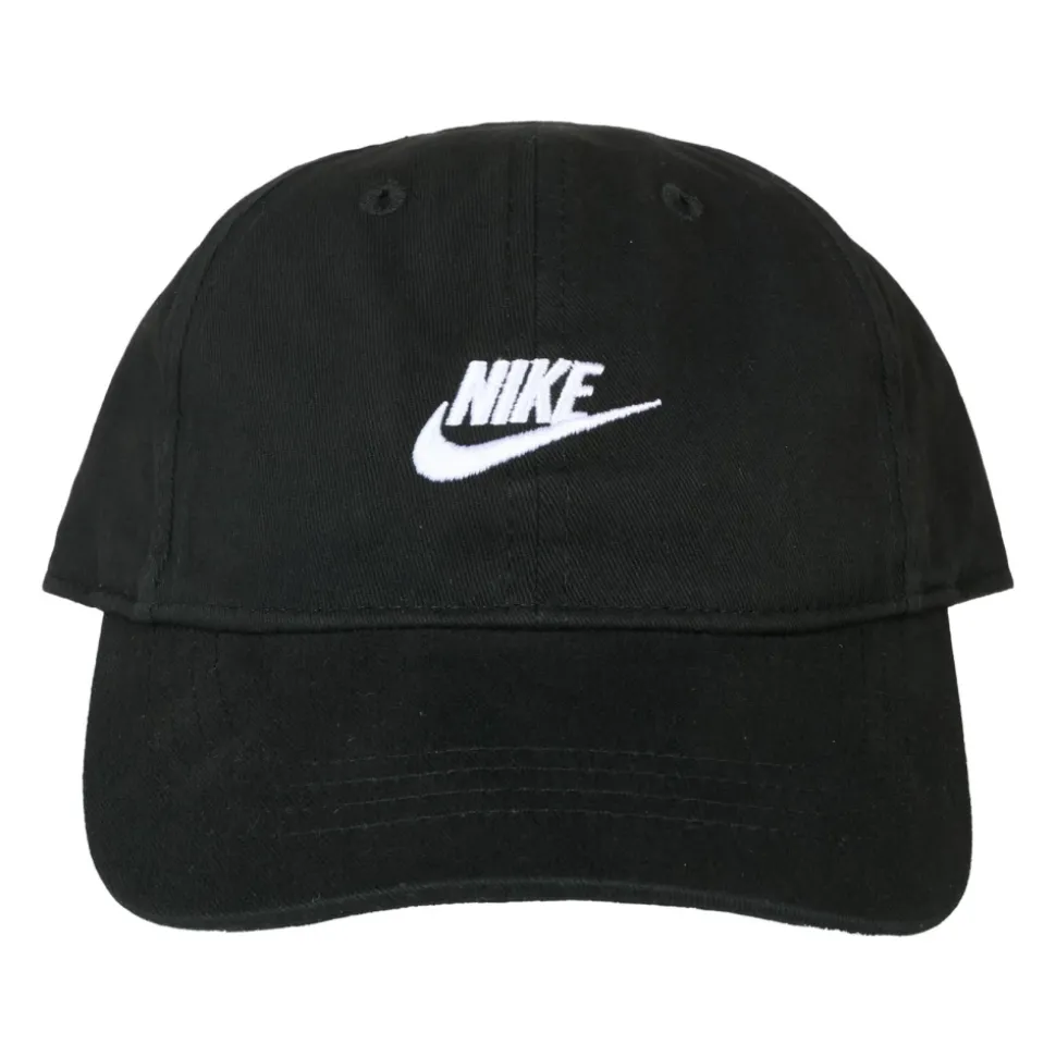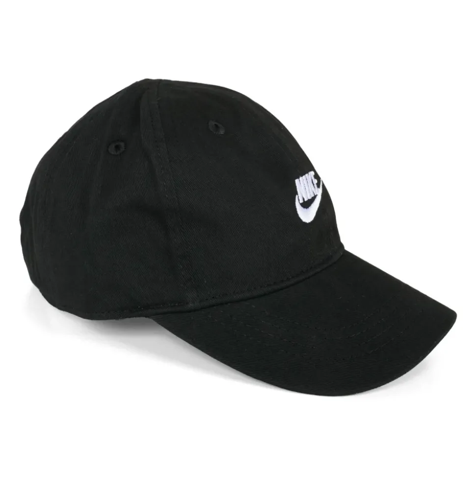 Upgrade de stijl van je kind met deze zwarte Nike pet met klep, klittenbandsluiting, geborduurd logo en Swoosh-detail aan de voorkant. Gemaakt van 100% katoen.