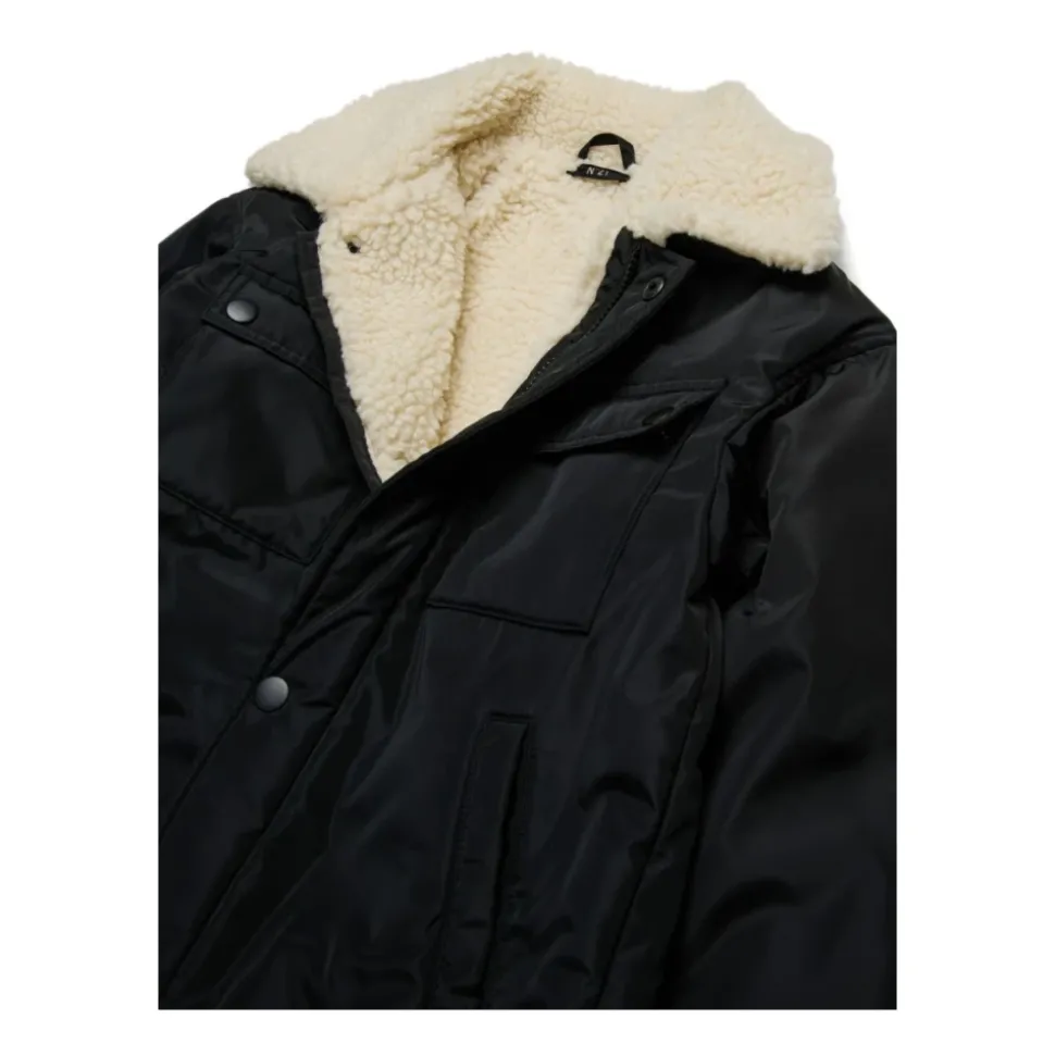 Blijf warm en stijlvol met deze Nº21 Kids jas met logo applicatie. Deze zwarte winterjas heeft een voorsluiting met drukknopen, klepzakken op de borst, twee zijzakken en lange mouwen. Gemaakt van 100% polyester voering, padding en buitenmateriaal.