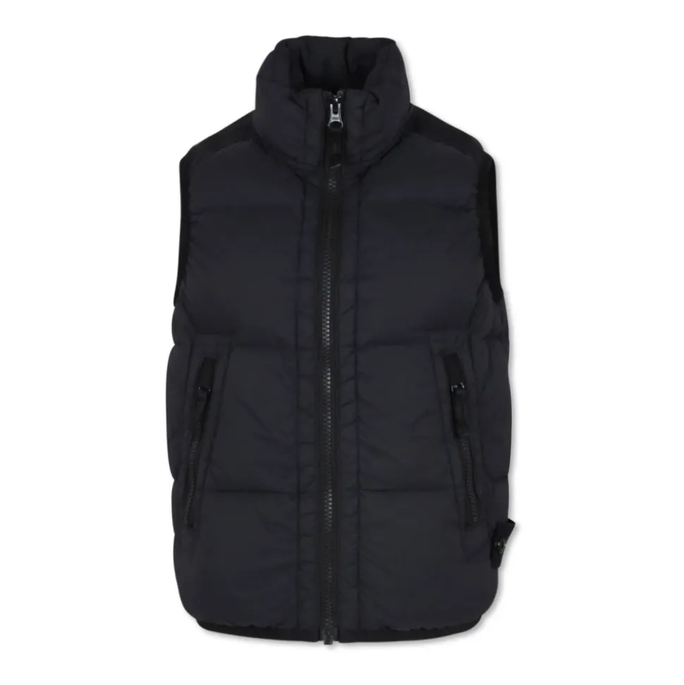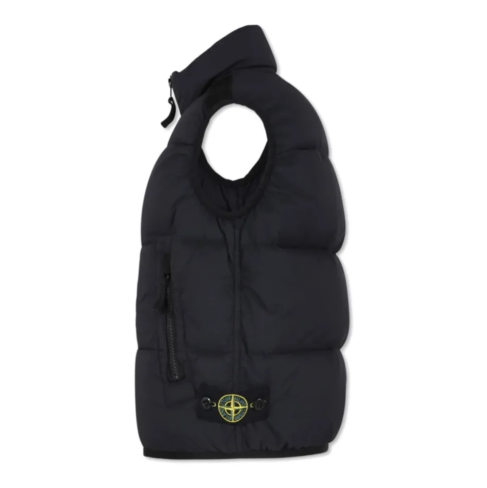 Upgrade de stijl van je kleine man met deze strakke zwarte Stone Island Kids jas. Gemaakt van een mix van hoogwaardige stoffen, is deze vest perfect voor elke jonge trendsetter.