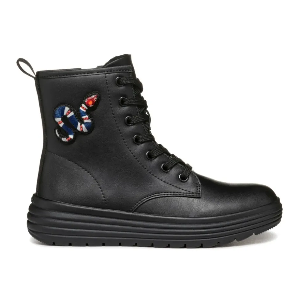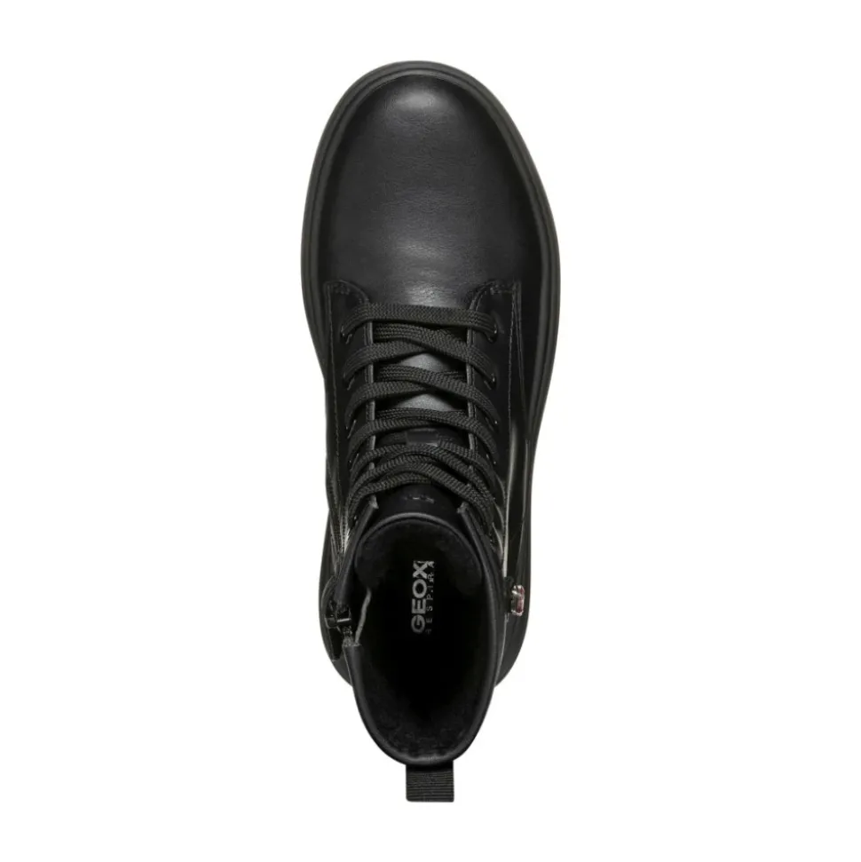 Koop deze stijlvolle Geox laarzen voor meisjes, perfect voor kinderen. Deze zwarte laarzen (Productcode: J46ETE 000BC C9999) zijn gemaakt van 100% Polyurethaan (PU) bovenkant, wol, polyester (PES) en Polyurethaan (PU) voering, en 100% Polyurethaan (PU) zool.