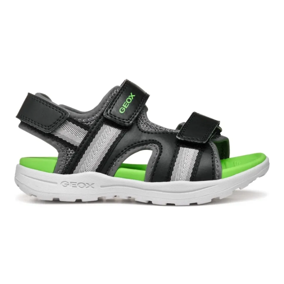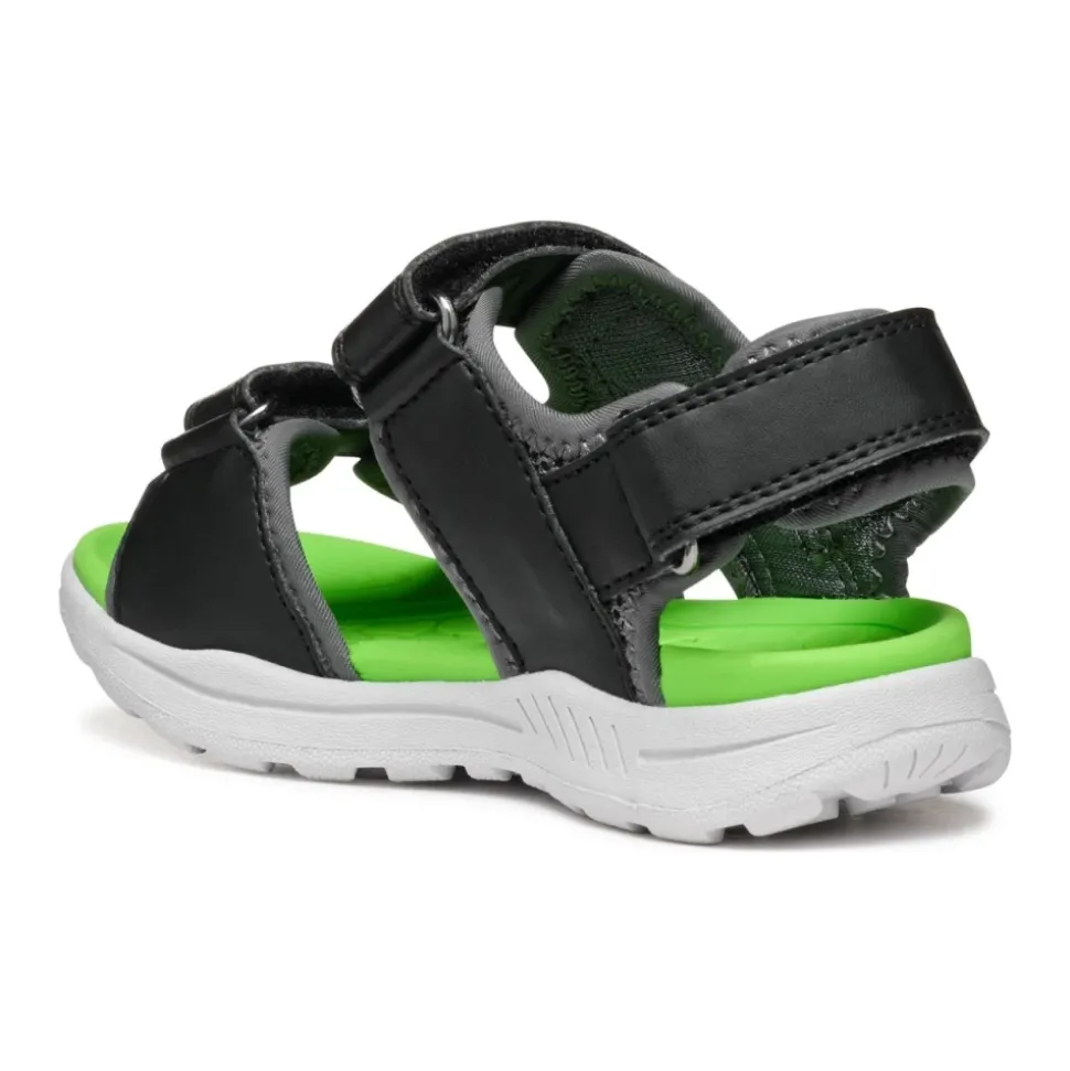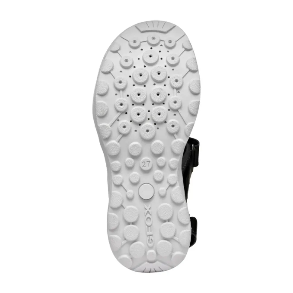 Ontdek deze zwarte Geox sandalen voor jongens, perfect voor kinderen. Gemaakt met een bovenwerk van polyurethaan, nylon en polyester, en een comfortabele rubberen zool. Productcode: J555XB 01454 C0016. Fabrikant: Geox S.p.A, Italië. Voor meer informatie, bezoek geox.com of neem contact op met [email protected].
