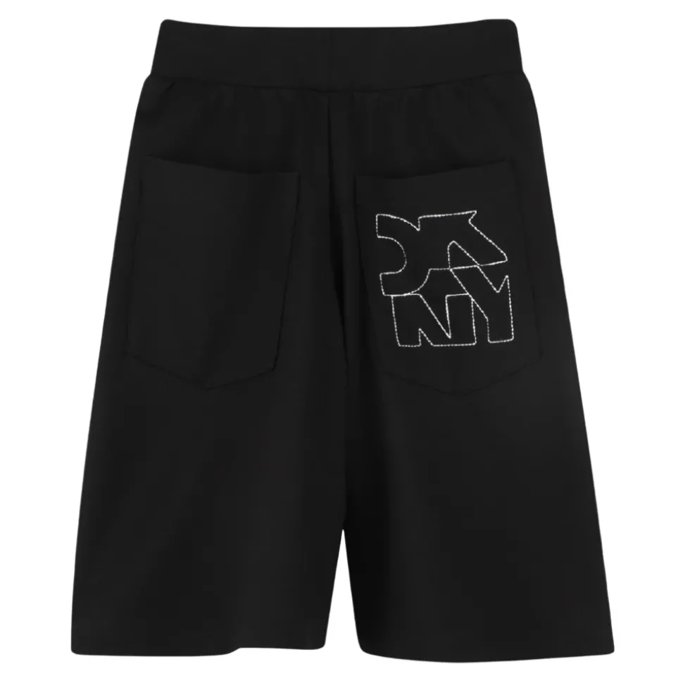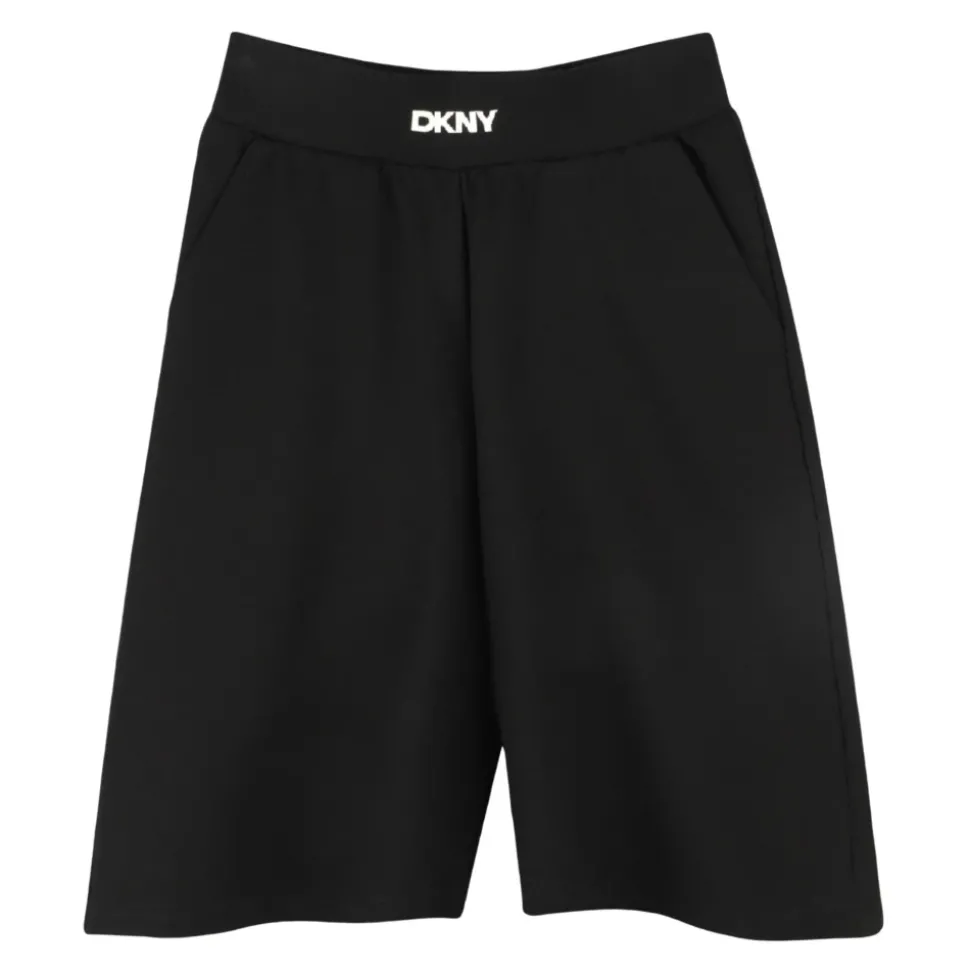 Upgrade de garderobe van je kleine meid met deze DKNY Kids zwarte knielange shorts. Voorzien van een elastische tailleband, twee zijzakken, twee achterzakken, een contrasterend wit logo en een regular fit. Gemaakt van 62% polyester, 33% viscose en 5% elastaan.