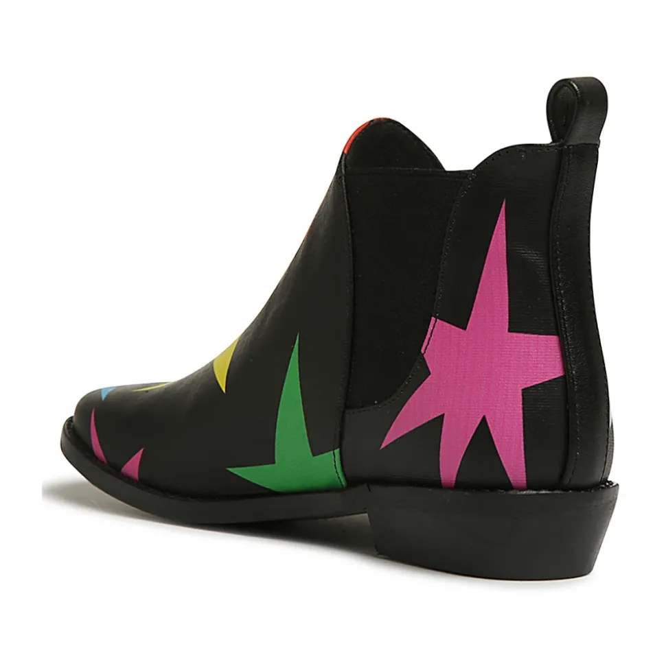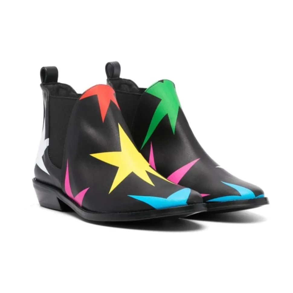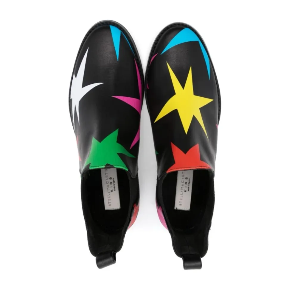 Geef je stijl een boost met deze enkellaarsjes van Stella McCartney Kids, gemaakt van zwart en meerkleurig kalfsleer met een sterrenprint in reliëf. Deze instaplaarsjes zijn ontworpen voor comfort en duurzaamheid, met een leren buitenzool. Belangrijkste kenmerken: Zwart | Multicolor | Kalfsleer | Elastische inzetstukken aan de zijkant | Ronde neus | Sterrenprint in reliëf | Inlegzool met logo |