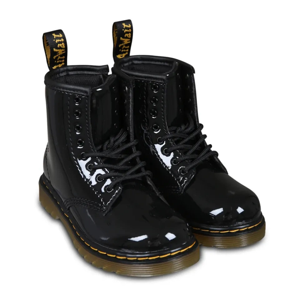 Geef je stijl een boost met de Dr. Martens Zwarte Lamper Bikerlaarzen met lakleer, met een klassiek lak effect en iconische gele stiksels. Belangrijkste kenmerken: Zwart | Leer | Lak effect | Gele en zwarte hiellus | Gele stiksels | Samenstelling en onderhoud: 100% leer | Wassen met een vochtige doek