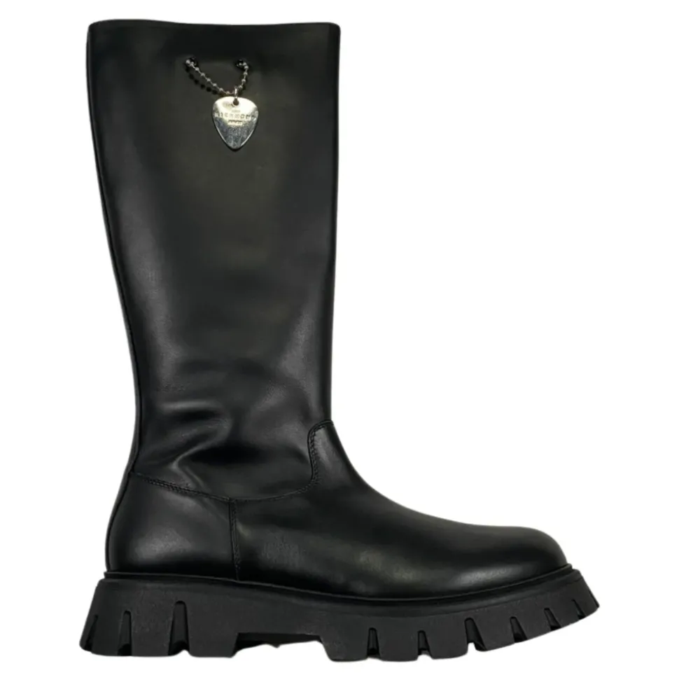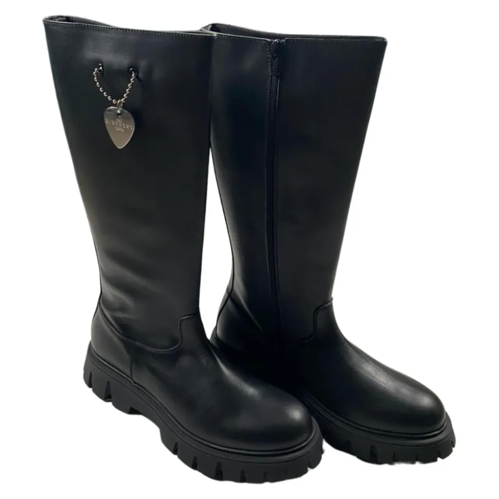 Zwarte Leren Kinderlaarzen Hartontwerp