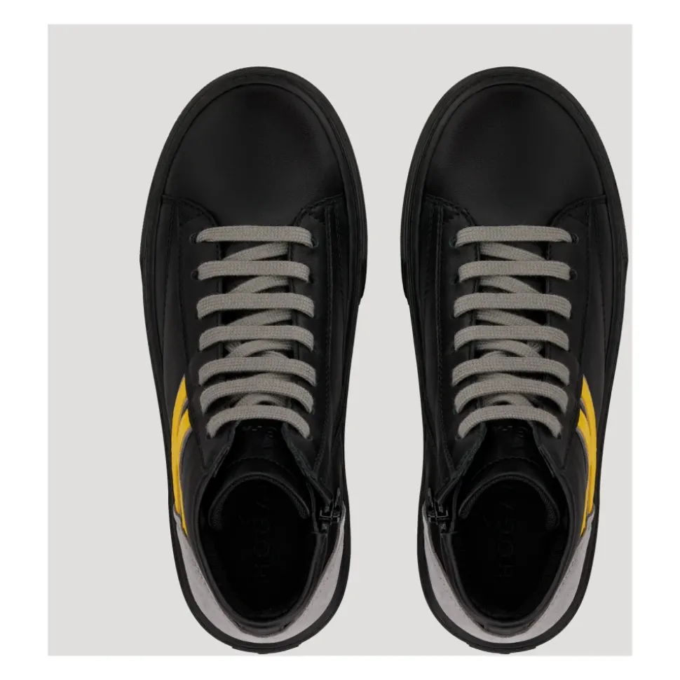 Ontdek de perfecte combinatie van stijl en comfort met deze zwarte leren sneakers van Hogan. Deze sneakers zijn vervaardigd uit glad leer met suède details en zijn ontworpen voor casual gelegenheden. Belangrijkste kenmerken: Zwart | Leer | Laterale ritssluiting | Iconische Hogan H aan de zijkant |