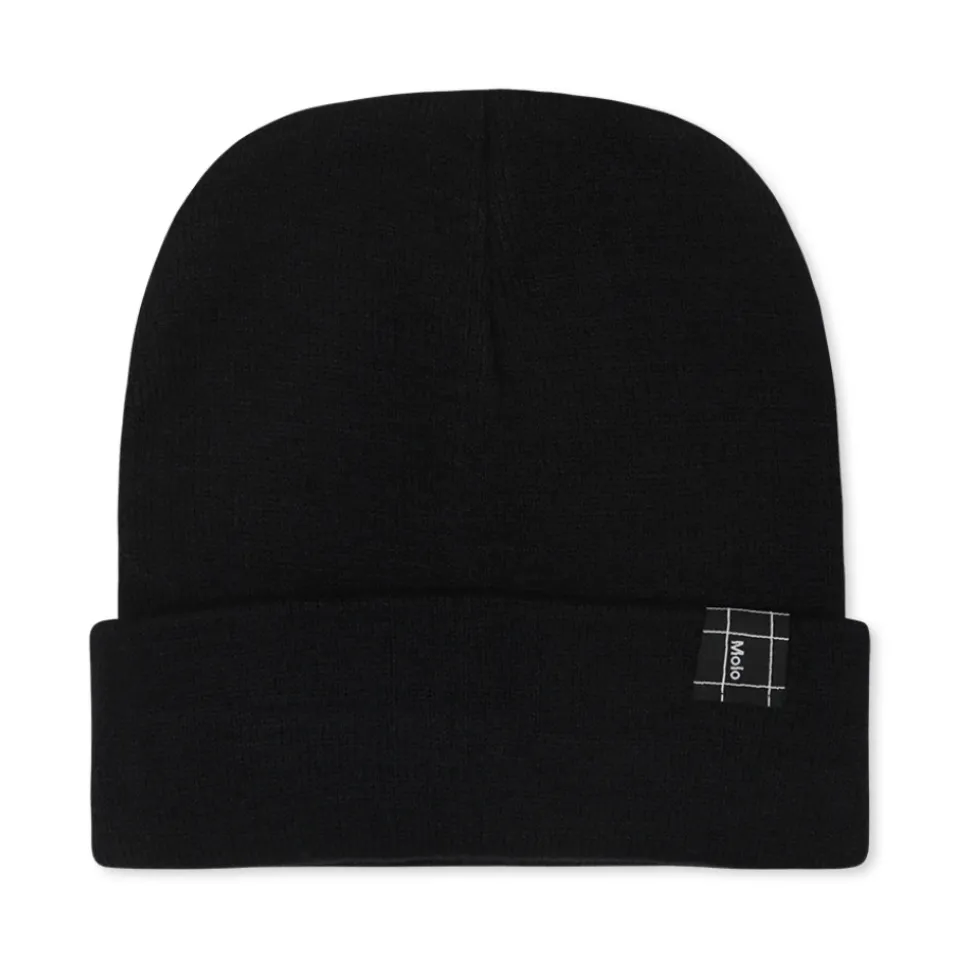 Blijf stijlvol en warm met deze zwarte Molo muts met omslag en logo patch aan de voorkant. Gemaakt van 100% acryl, machinewasbaar op 40°C.