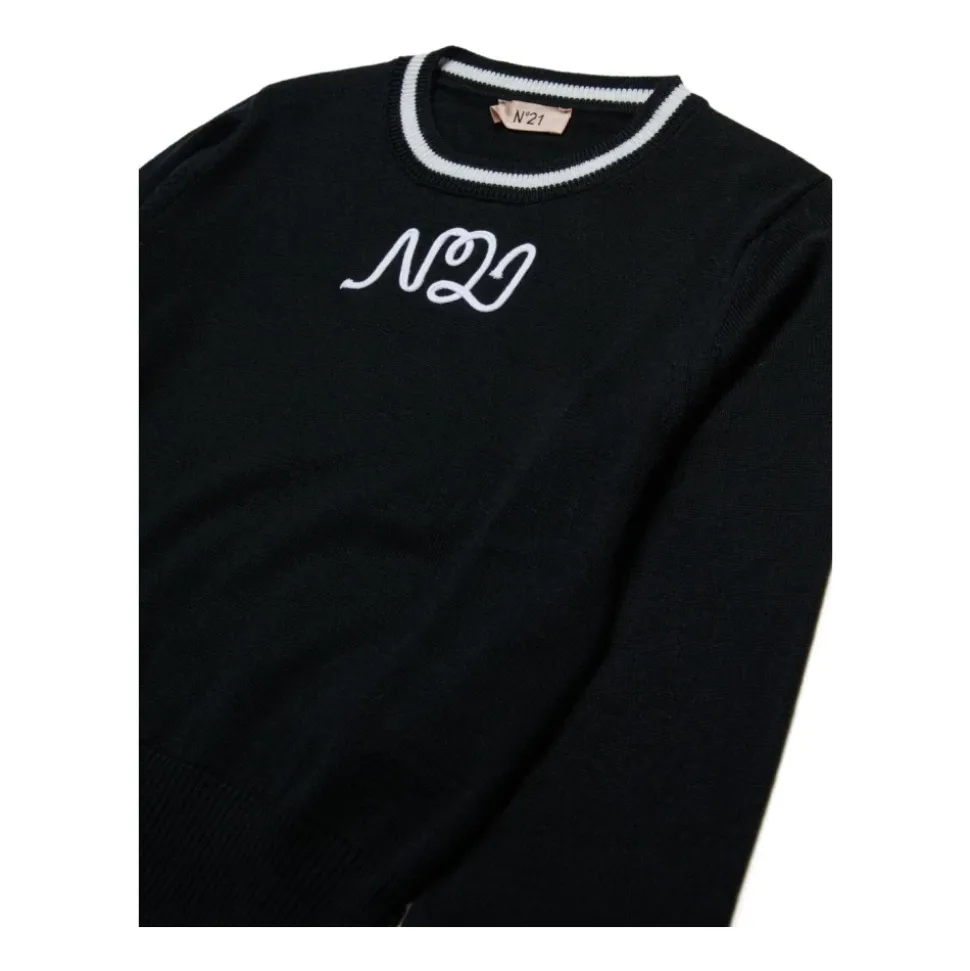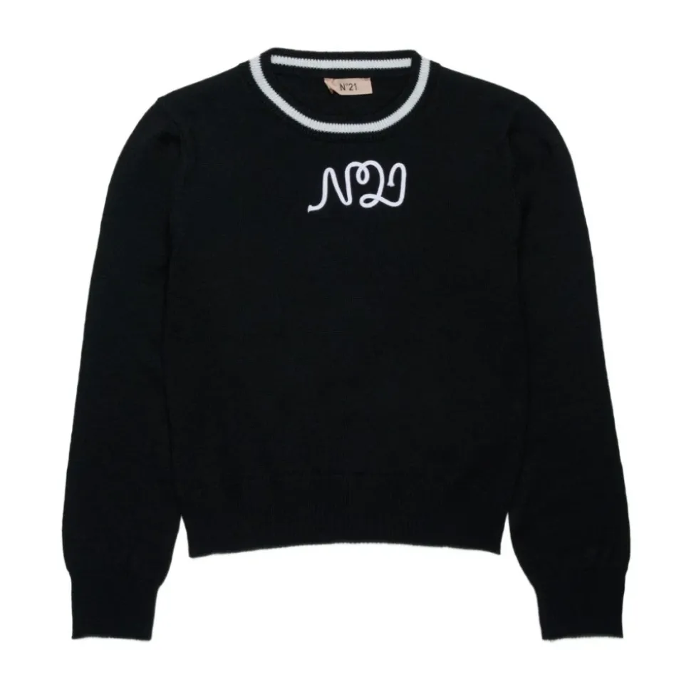 Upgrade de garderobe van je kleine meisje met deze Nº21 Kids Logo Sweater. Voorzien van een zwarte ronde hals met contrasterende afwerking, geribbelde zoom en manchetten, en lange mouwen. Gemaakt van 50% wol en 50% acryl.