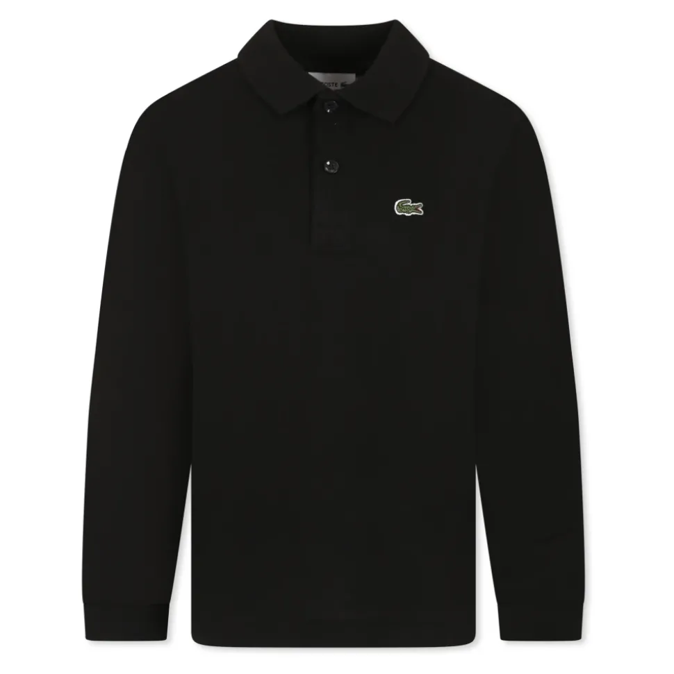Upgrade de garderobe van je kind met deze Lacoste zwarte katoenen piqué polo shirt. Met lange mouwen, een puntkraag en knoopsluiting aan de voorkant, is het versierd met het iconische krokodillenlogo geborduurd op de borst. Gemaakt van 100% katoen. Machinewas op 30°C.