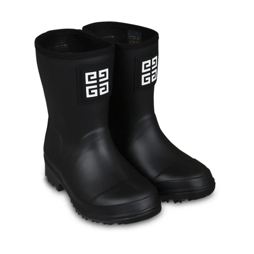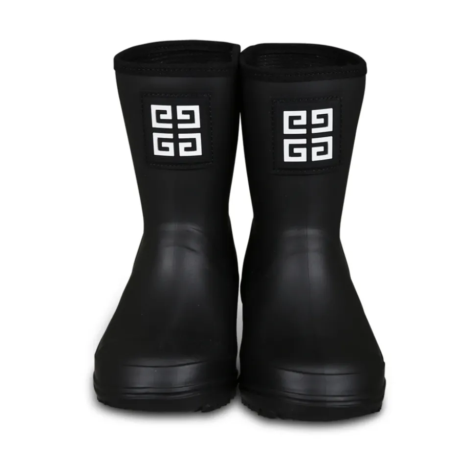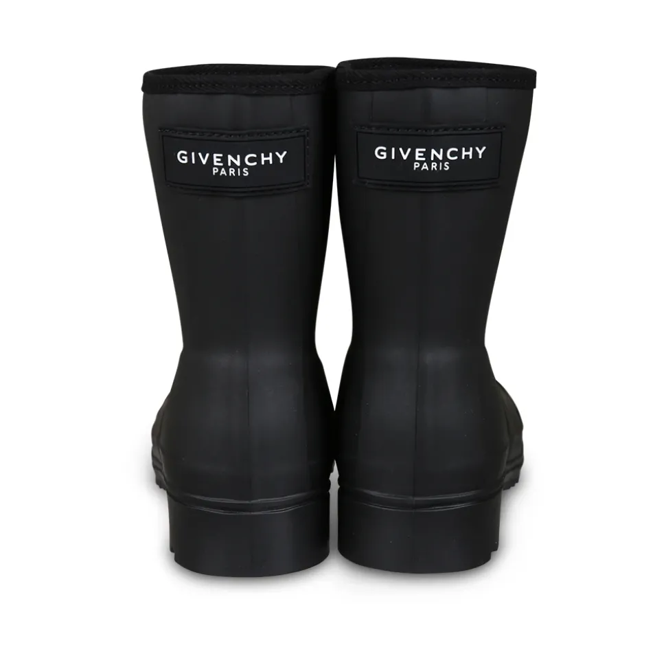 Blijf stijlvol op regenachtige dagen met deze zwarte PVC regenlaarzen van het Franse luxemerk Givenchy Kids. Waterdicht, flexibel en voorzien van een gegroefde zool voor maximale grip. Versierd met een siliconen label met het iconische 4G-motief. Gemaakt van 100% PVC.