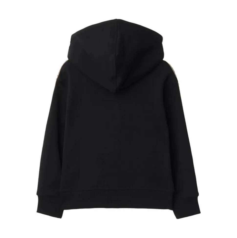 Geef de stijl van je kleine heer een boost met deze zwarte Burberry sweatshirt met ritssluiting aan de voorkant en het kenmerkende Equestrian Knight motief op een nonchalante capuchon.