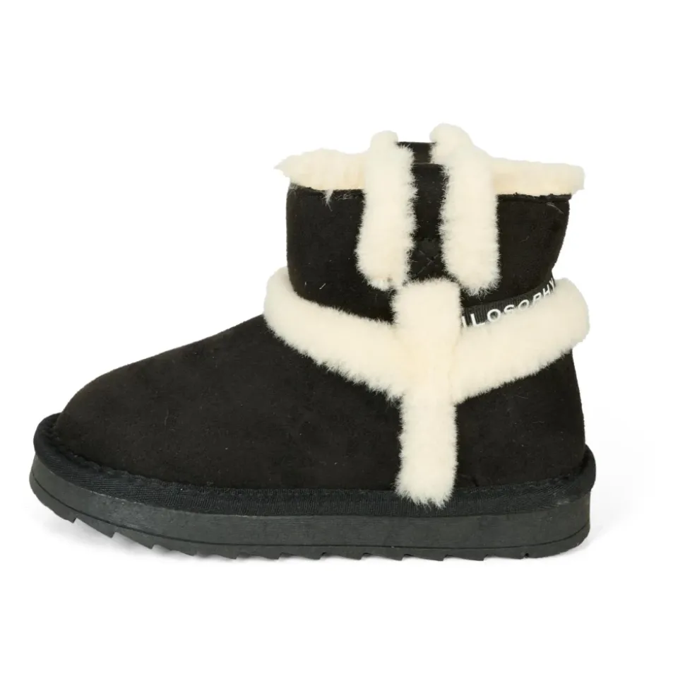 Upgrade de stijl van je kind met deze zwarte suède enkellaarsjes van Philosophy di Lorenzo Serafini. Voorzien van rubberen zolen, zachte faux fur voering, logo opdruk aan de achterkant en faux fur details. Gemaakt van 100% textiel.