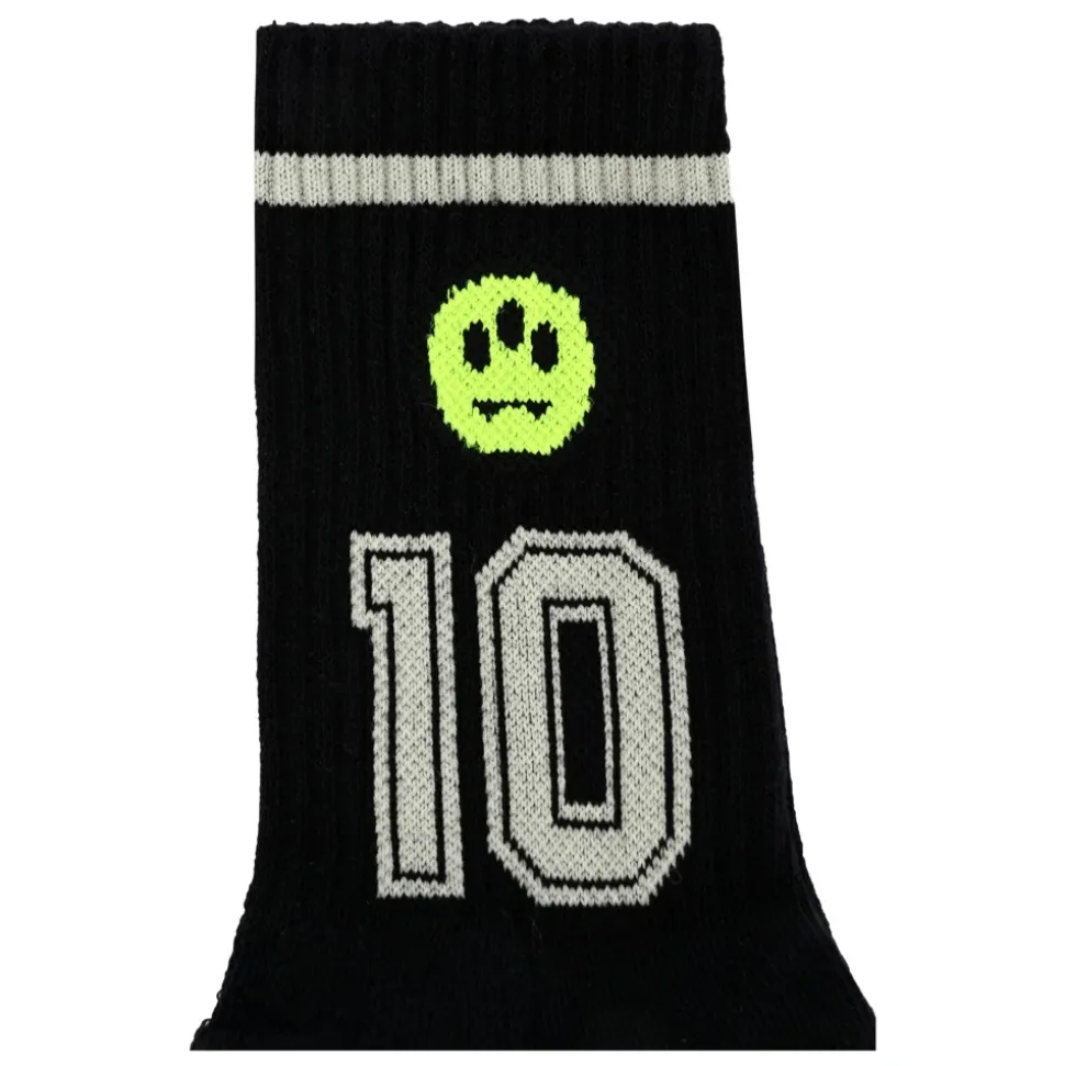 Upgrade de sokkenlade van je kind met deze zwarte terry sokken van BARROW. Voorzien van een geribbeld design en versierd met de iconische gele smiley en cijfers aan de zijkanten. Gemaakt in Italië van 90% katoen, 7% polyamide en 3% elastaan. Machinewasbaar op 30°C.