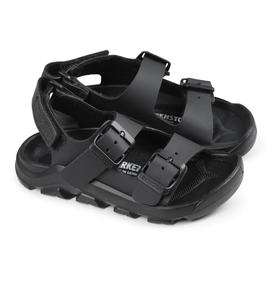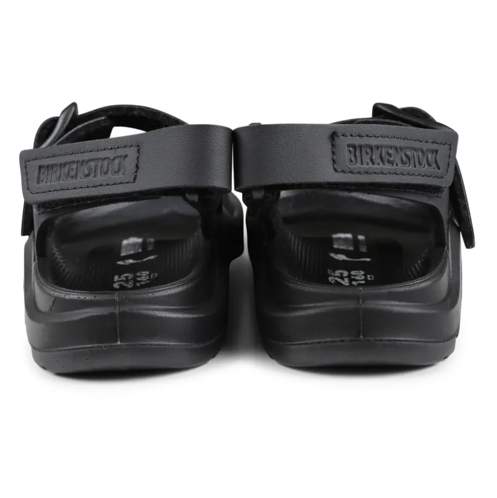 Maak je kinderen klaar voor elk avontuur met deze zwarte Birkenstock sandalen. Met twee verstelbare banden, een waterbestendige voetbed met teenbescherming en een schuimzool zijn deze flexibele sandalen perfect voor alle terreinen. Gemaakt met Birko-Flor bovenwerk, een slijtvast synthetisch materiaal dat zacht is voor de huid, en versierd met een reliëflogo aan de zijkant. 100% polyester details.